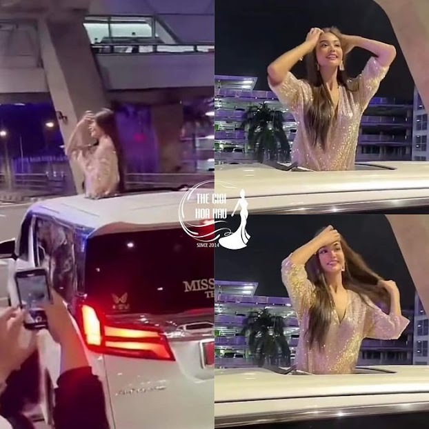 Á hậu 1 được đặc cách đi xe riêng và diễu hành khắp đường phố Thái Lan (ảnh MXH)
