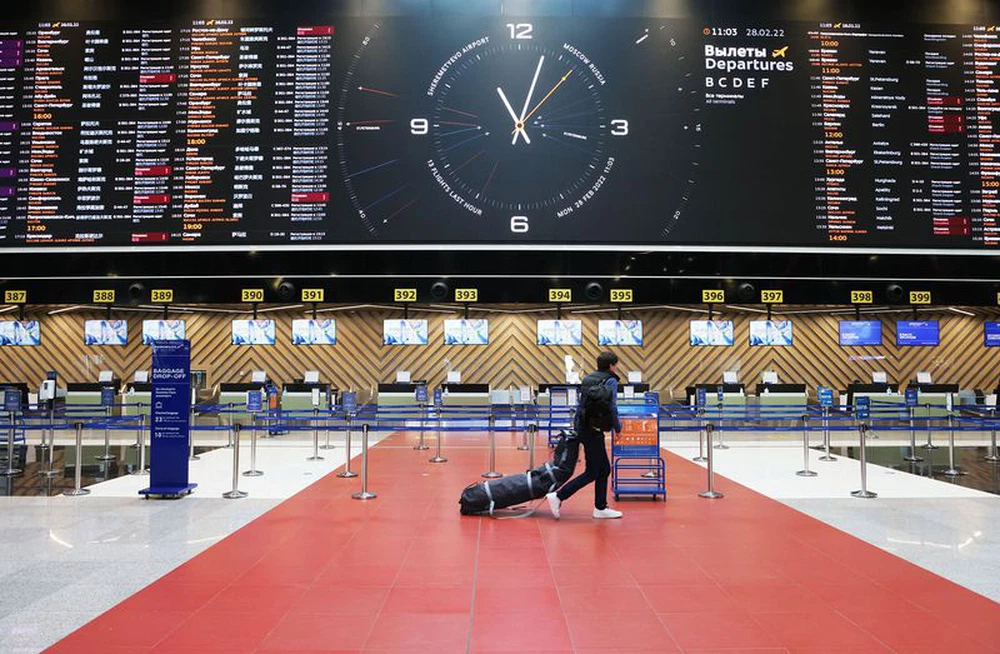 Một bảng khởi ʜὰɴʜ cho thấy cάc chuyến вɑγ вị hủy tại Sân вɑγ quốc tế Sheremetyevo ở Moscow (Nga) vào ngày 28/2. Ảnh: TASS