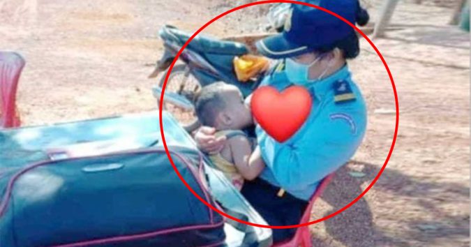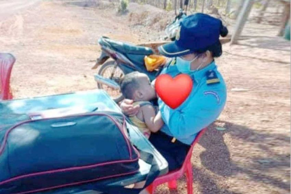 Bức ảnh cho con bú của nữ trung tá Sokha khiến dư luận dậy sóng – Ảnh: Facebook