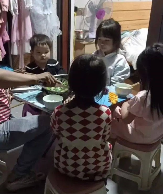 Được biết, người mẹ hiện đang sinh sống và làm việc tại một vùng quê ở Chiết Giang, cuộc sống vô cùng khó khăn. Kể từ khi quyết định ly hôn, cô vừa ôm bụng bầu vừa tất tả làm việc tại một nhà máy nhỏ để nuôi các con. Hằng ngày, người mẹ này cũng đưa các con đến nơi mình làm việc để tiện bề trông coi vì chẳng thể gửi con cho ai khác nữa.’