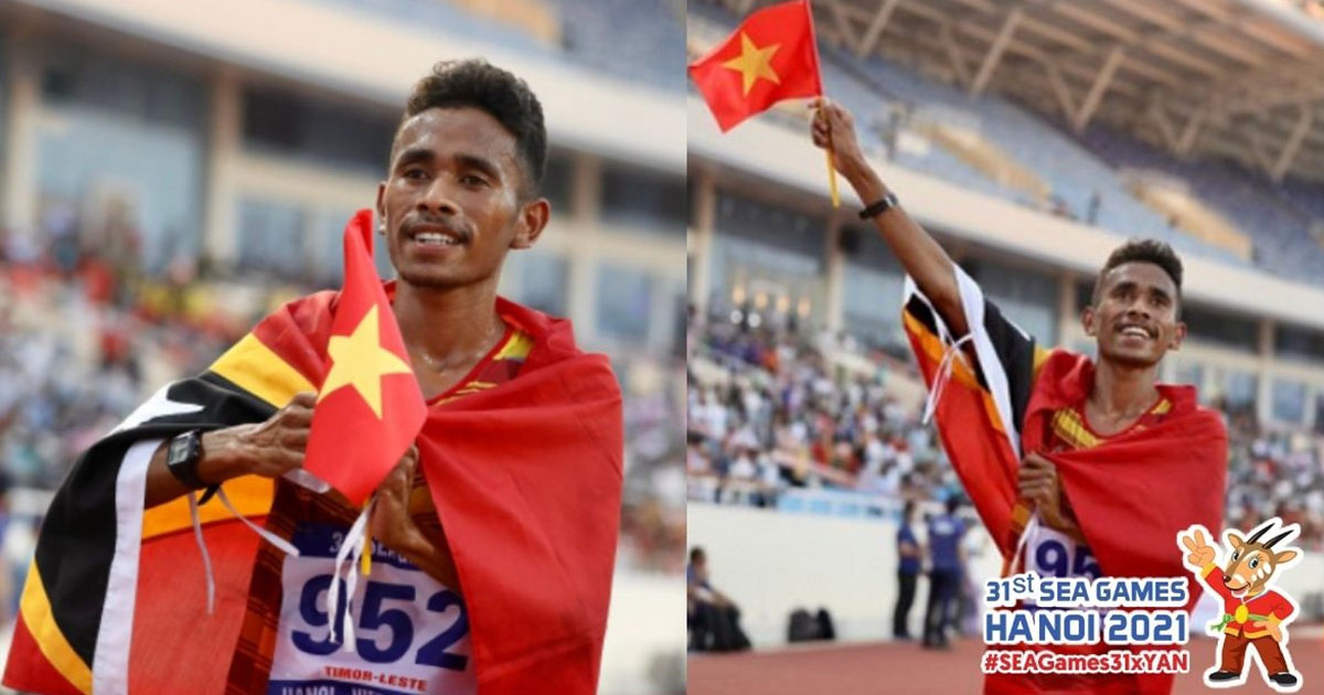 Mới đây, màn ăn mừng sau khi giành huy chương bạc của vận động viên điền kinh Felisberto De Deus người Timor Leste khiến nhiều người xúc động. Cụ thể, sau khi giành huy chương bạc trong nội dung 10.000m nam tại SEA Games 31, vận động viên người Timor Leste đã nở nụ cười vui mừng, khoác trên vai lá quốc kỳ của quê hương mình. Đặc biệt, trên tay anh vẫn giữ chặt lá cờ Việt Nam như một lời cảm ơn tới cổ động viên Việt Nam vì đã tiếp thêm sức mạnh cho anh dù phải thi đấu ở nơi đất khách quê người.