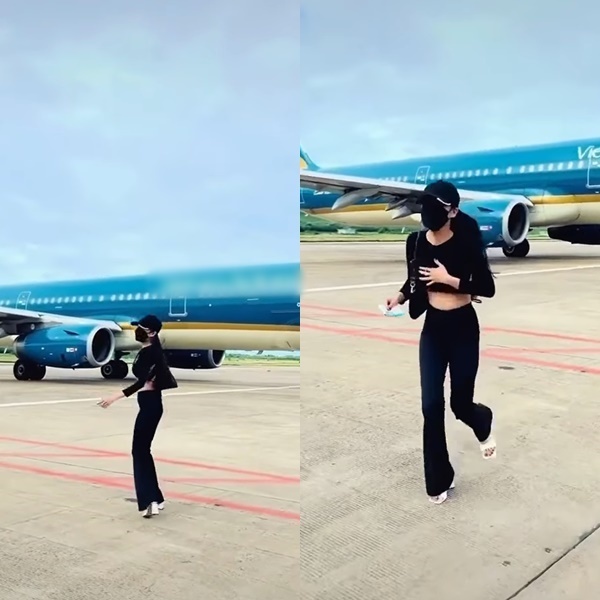 Mạng xã hội đang lan truyền đoạn clip Tiktok về một cô gái tự do đi lại, tạo dáng trên đường băng sân bay. Ngay phía sau người này là một chiếc máy bay đang di chuyển.