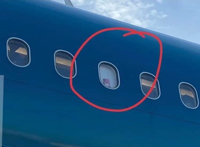 Hành vi kẹp điện thoại giữa cửa kính máy bay và tấm che cửa để quay cảnh máy bay cất cánh. Ảnh: Diễn đàn hàng không.
