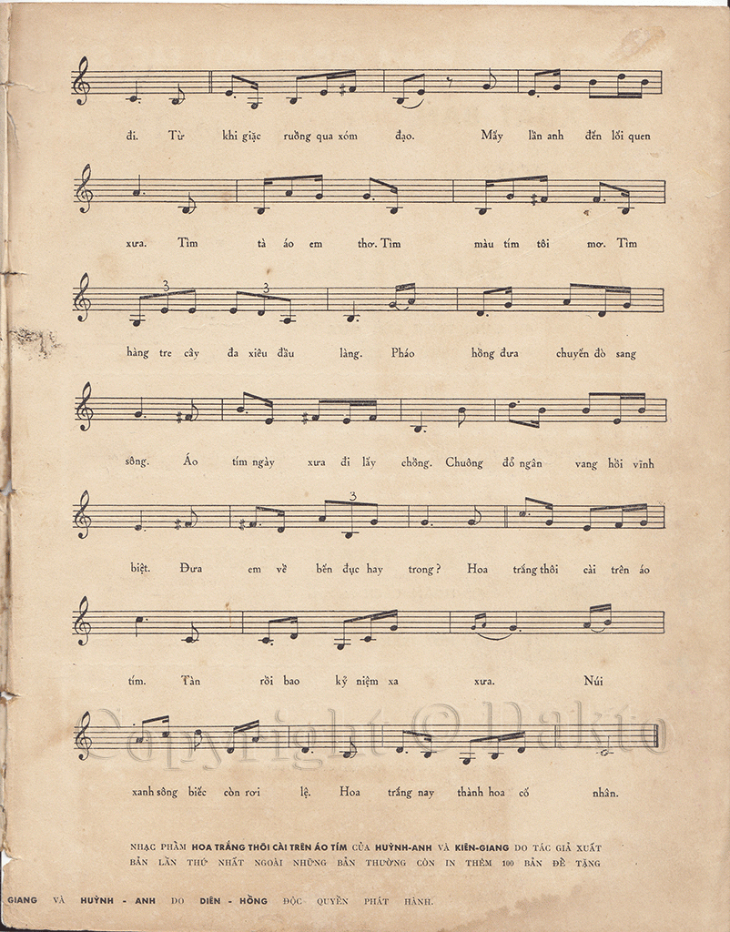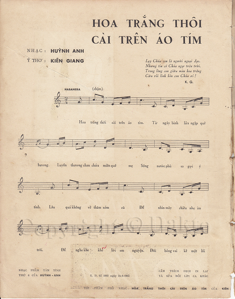 Nhưng khi nhạc sĩ Huỳnh Anh phổ nhạc lại dựa trên bản gốc của bài thơ sáng tác nên ca khúc “Hoa trắng thôi cài lên áo tím” thì bài thơ lại lần nữa trở nên nổi tiếng. Đến năm 1998 bà Nhiều qua đời, có người báo tin về nhà ông nhưng vì công tác xa nhà nên ông đã không biết được tin ấy. Ngày về lại Sóc Trăng thắp cho bà nén nhang trên mộ trong sự tiếc nuối đã không được gặp mặt nhau lần cuối.