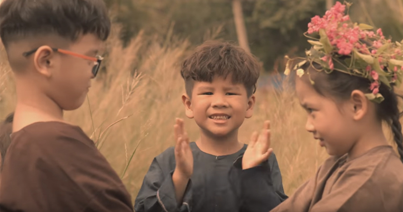 Hai đứa chung vui khi xuân vừa tới thơ ngây cuộc đời.