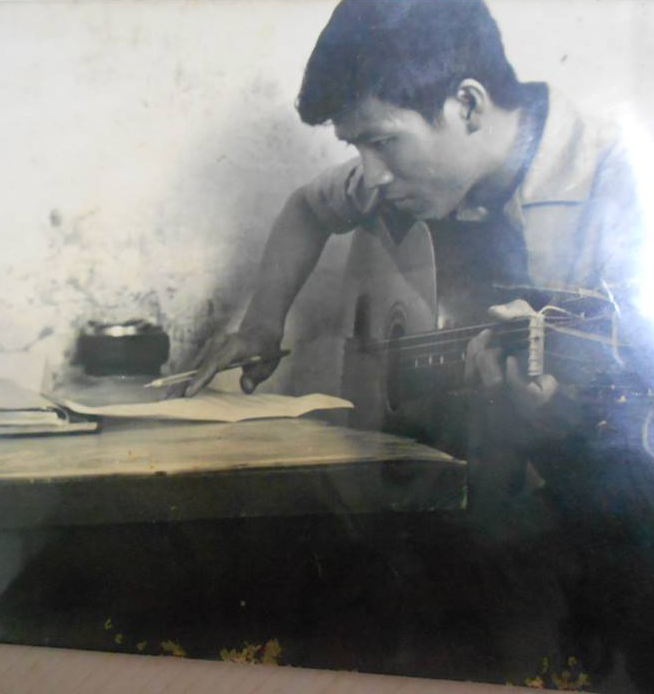 Khoảng thập niên 1940 ngày đó ông còn học tại Huế, ông si mê vẻ đẹp của một thiên kim tiểu thư con nhà danh gia vọng tộc dòng họ Tôn Thất, con của quan thượng thư tên là Công Tằng Tôn Nữ Kim Anh. Lúc đó ông còn đang tập tành chơi đàn mandoline.