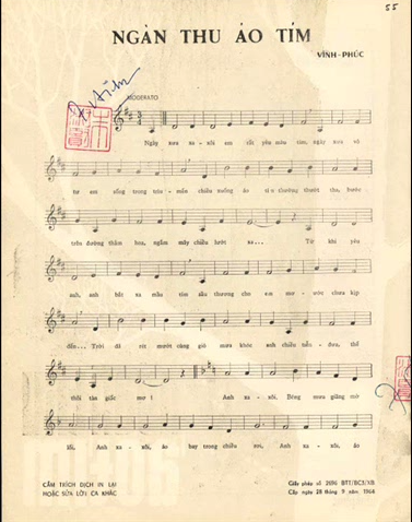 Được biết bài hát “Ngàn thu áo tím” được nhạc sĩ Hoàng Trọng sáng tác phần nhạc, còn phần lời là của nhà thơ Vĩnh Phúc. Không ai biết nhà thơ Vĩnh Phúc là ai, nhưng có 1 tài liệu liên kết thông như sau : Ngày xưa nhạc sĩ Hoàng Trọng và nhà thơ Lưu Văn Mão thường xuyên gặp nhau để đàm đạo, có thể nói hai người như hai người bạn tri kỉ vậy.