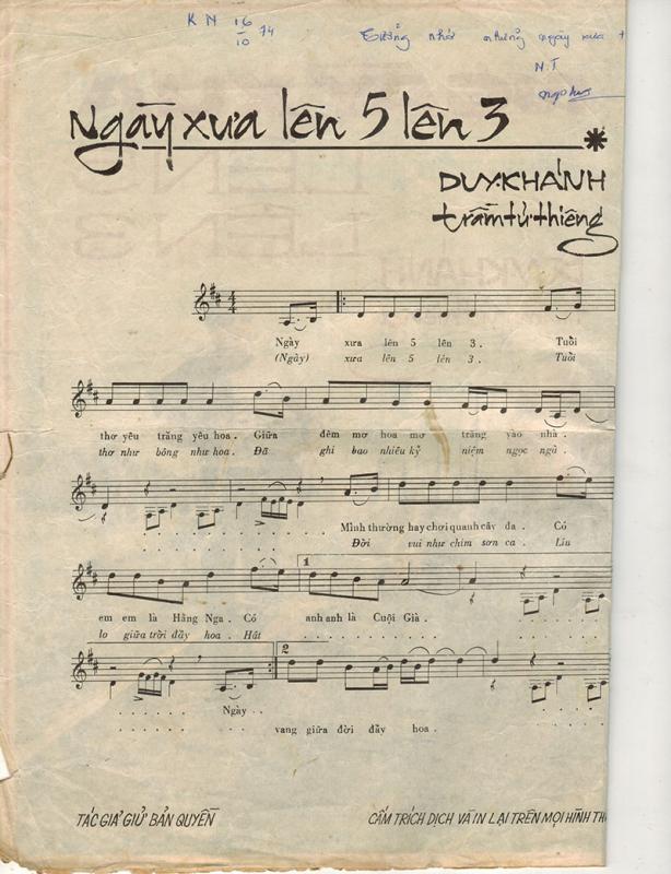 Sau năm 1975 cả 2 đều bị cấm về nhân thân nên khi đó tất cả các bài hát của 2 nhạc sĩ cũng bị cấm lưu hành. Sau này khi ca sĩ Quang Linh và Mỹ Lệ trình bày lại vào năm 2000 ca khúc này đã đổi tên tác giả lại thành Duy Thiêng để tránh việc sai phạm. Cái tên Duy Thiêng được ghép từ tên Duy Khánh và Trầm Tử Thiêng.