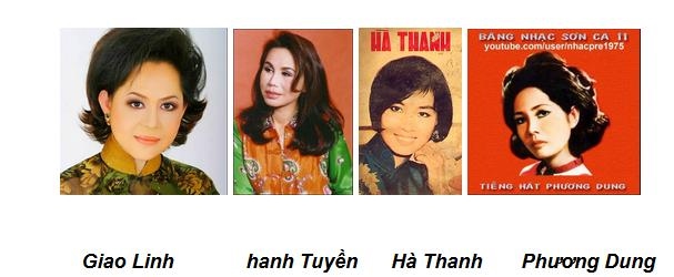 “Nữ Hoàng Sầu Mộng” với Giao Linh. “Nữ Hoàng Bolero” Thanh Tuyền. “Tiếng Hát Khói Sương”, “Tiếng Hát Liêu Trai”, “Tiếng Hát Lúc Không Giờ” của Thanh Thúy.