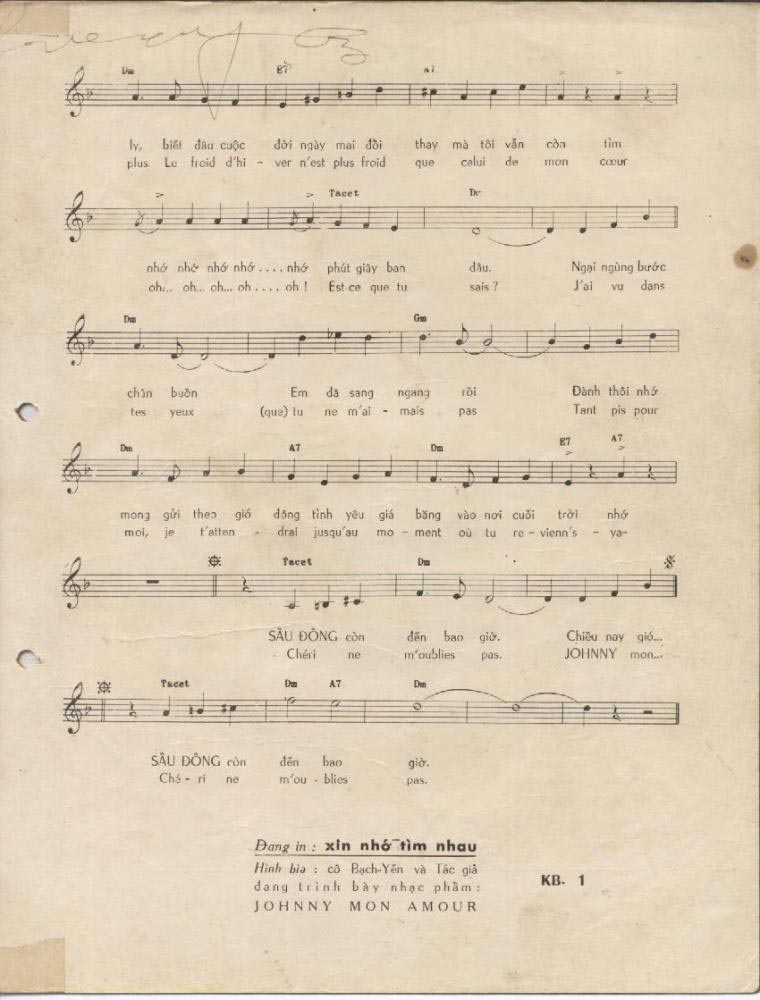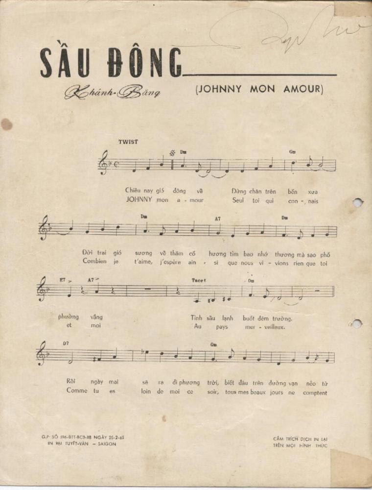 Ca khúc “Sầu đông” được xem là ca khúc nhạc trẻ đầu tiên ở Việt Nam. Ca khúc này được sáng tác vào năm 1962 và được ông viết thêm lời Pháp “Jonhny Mon Amour”.