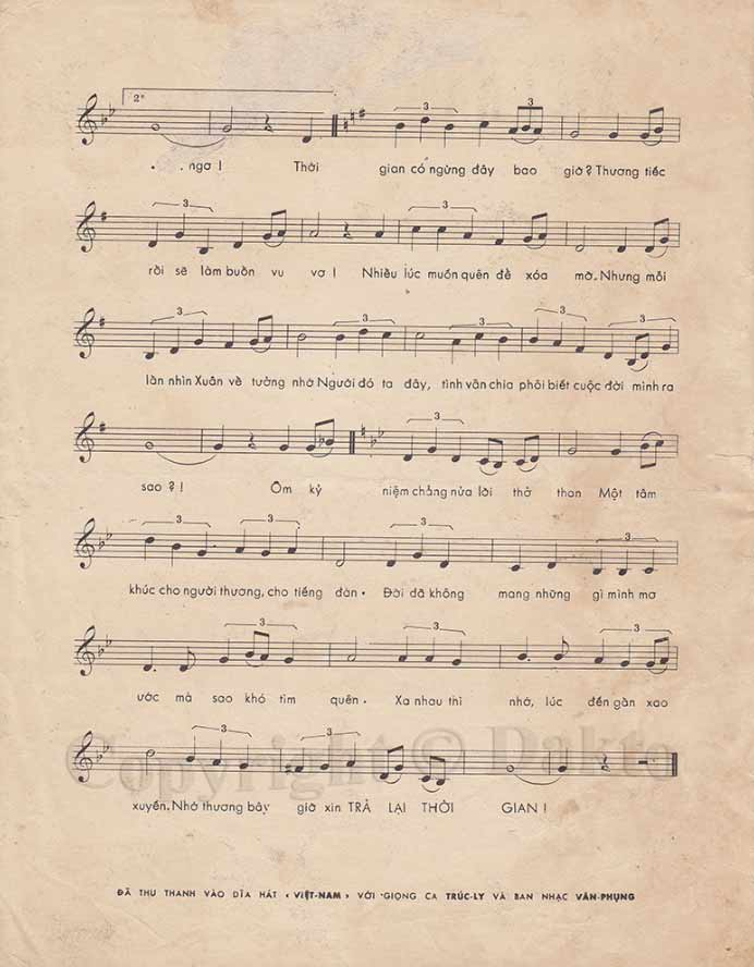 Bài hát “Trả lại thời gian” được viết năm 1968, được ca sĩ Trúc Ly thu âm bản đầu tiên.