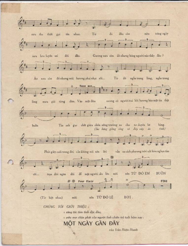 Nói về sự ra đời của ca khúc “Từ đó em buồn” nhạc sĩ Trần Thiện Thanh dựa trên câu chuyện về người chị của cô bạn học cùng lớp trung học với ông ở Phan Thiết : Chị ấy là cô gái phải gọi là tuyệt sắc giai nhân, chị có anh người yêu trong quân ngũ. Năm 1954 người yêu của chị phải tập kết ra Bắc.